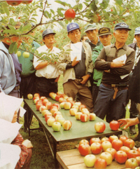 浪岡産「葉取らずりんご」のスタートは、昭和60年に消費者の皆さんと生産者の交流会で「見かけより味を優先しよう」の考えが一致して始まりました。